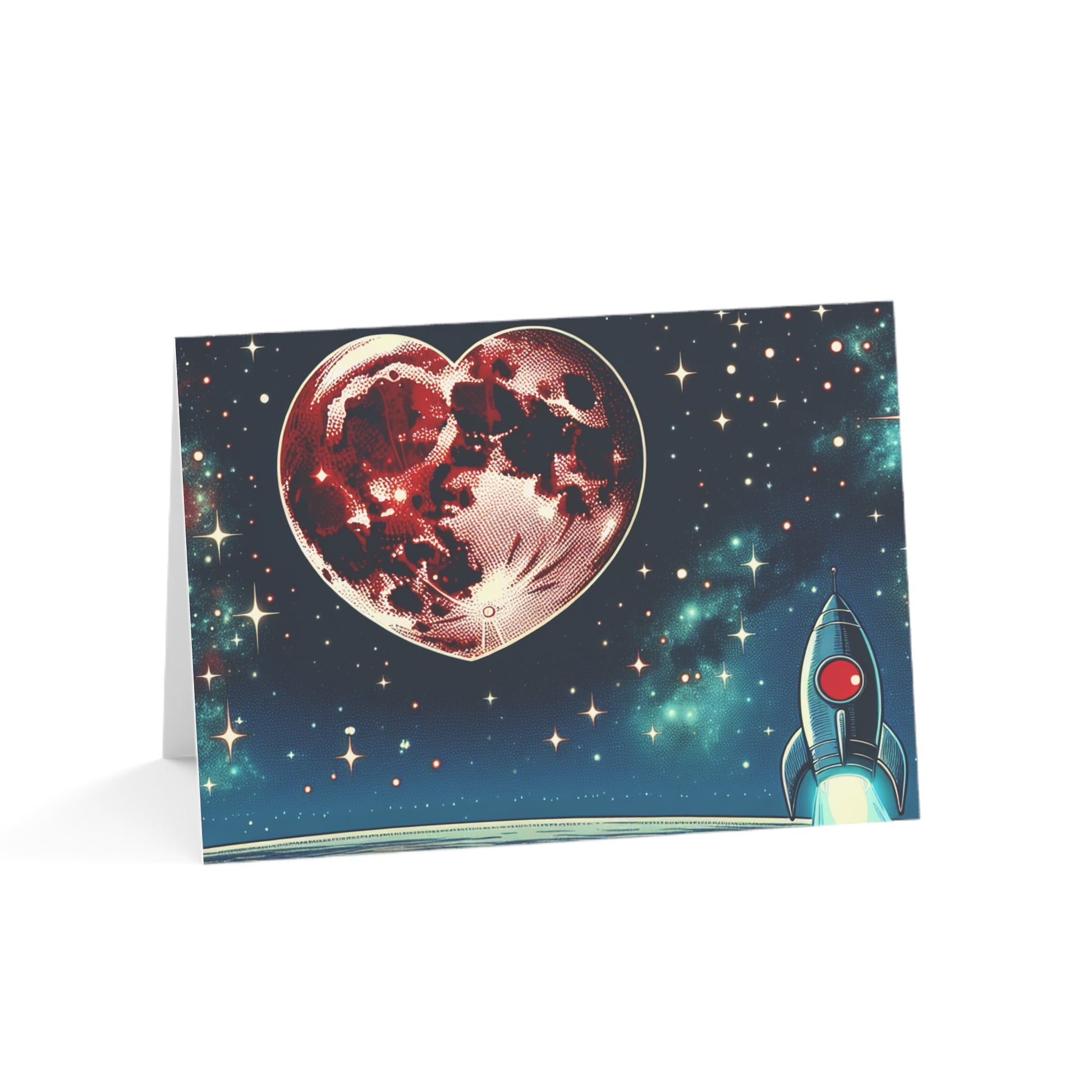 Send a heartfelt message with these vibrant and premium quality greeting cards. Perfect for expressing your love to someone special, the 'I love you to the moon and back' design adds a touch of romance. Whether it's a birthday, anniversary, Valentine's Day, or just to say 'I care', these cards are a thoughtful gesture that will brighten anyone's day. Suitable for all ages.
